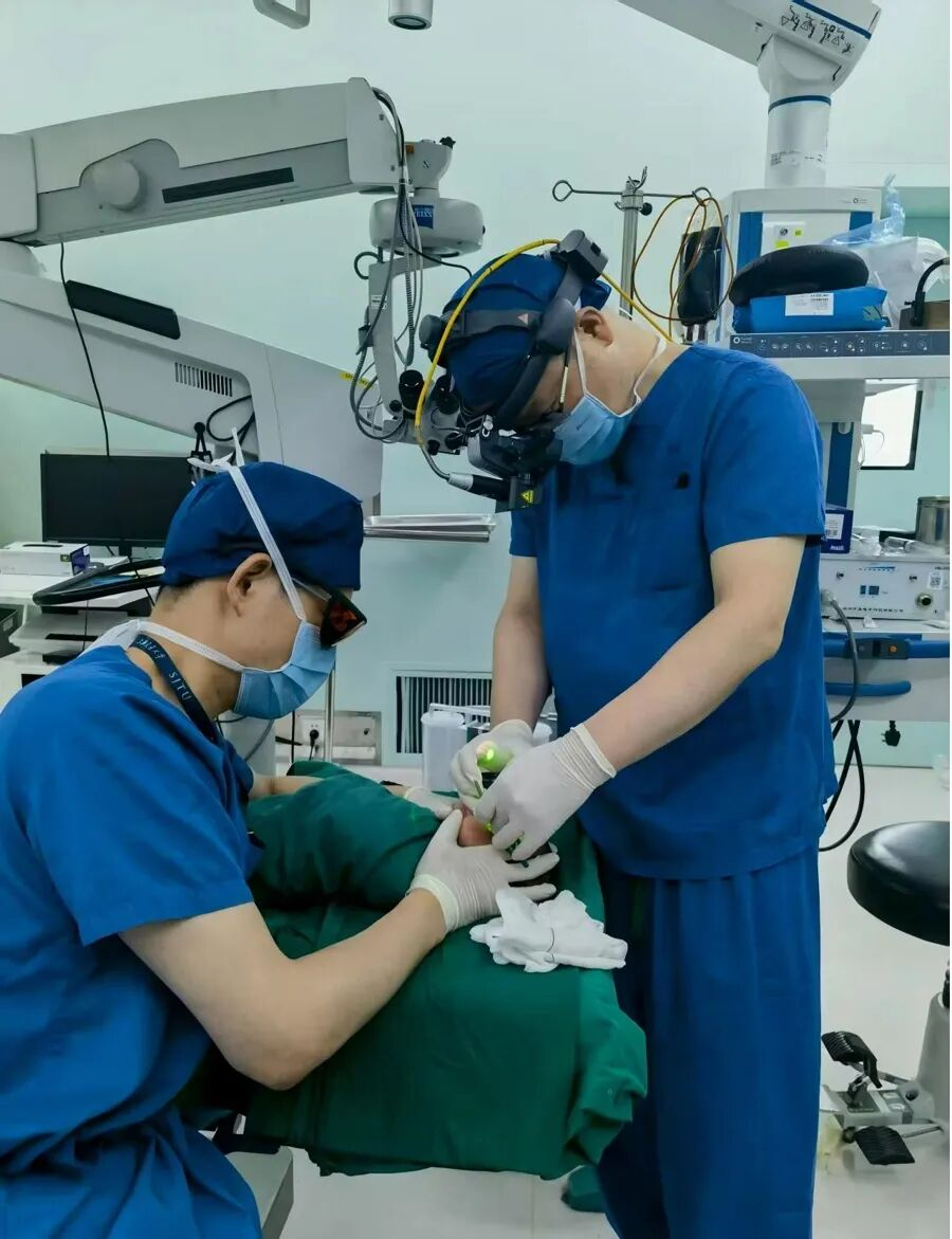 The next challenge is to perform vitrectomy (LSV) for Yang Yang. In order to ensure surgical safety, teams from pediatric ophthalmology, neonatology, anesthesiology, operating room, nursing department, etc. work closely together: neonatology comprehensively evaluates basic indicators such as twin heart and lung function and weight gain to provide a foundation for surgical tolerance; The anesthesia team has developed a personalized general anesthesia plan for premature infants with weak cardiopulmonary function and light weight. From precise conversion of anesthesia drug dosage to real-time dynamic monitoring of intraoperative heart rate, blood oxygen, and blood pressure, every step is carefully considered to ensure the safety and stability of the anesthesia process. In the end, Chief Anesthesiologist Qiu Yimin and Associate Chief Anesthesiologist Zhu Jiali successfully performed general anesthesia induction and tracheal intubation for Yang Yang.